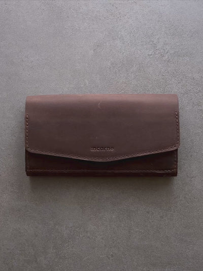 Horizontal tarot bag with magnetic clasp made from vintage leather