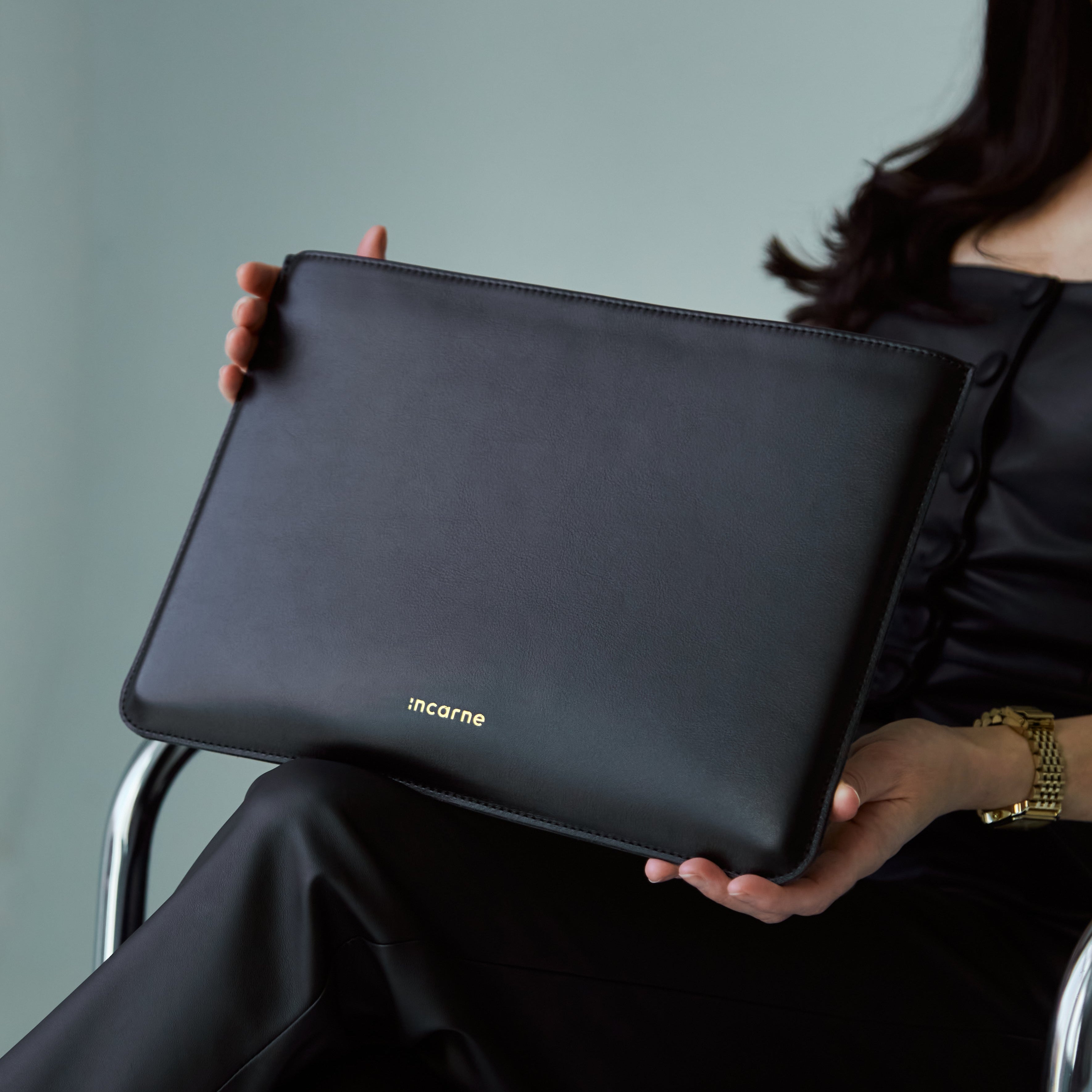 Premium leather MacBook sleeve in classic black — a perfect blend of elegance, protection, and functionality. This handcrafted MacBook case is made from high-quality black leather, designed to fit MacBook Air and MacBook Pro models with precision. The interior features a soft velvet lining and a thin protective layer that shields your device from bumps and scratches.