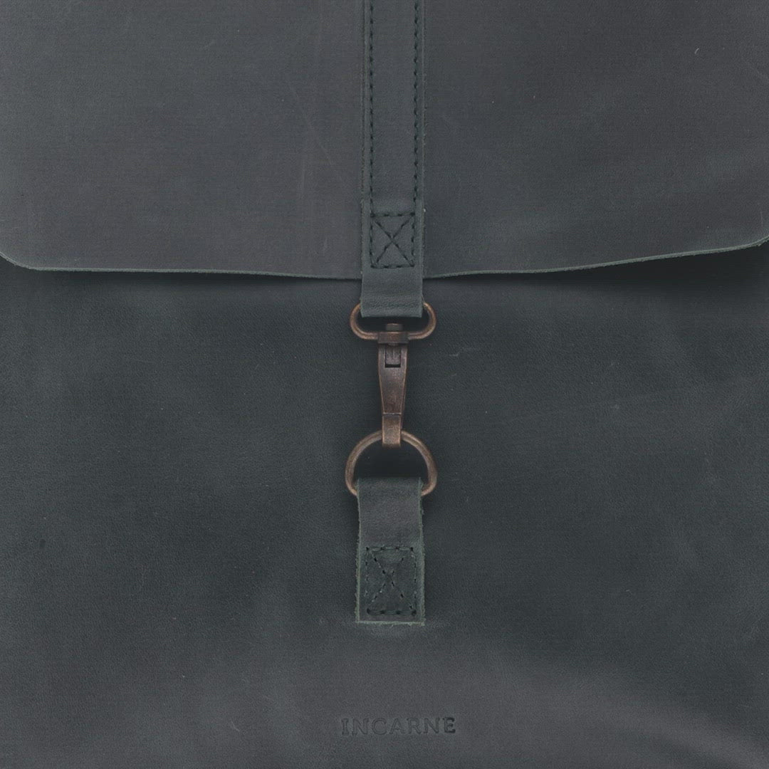 Crafted from unlined genuine leather, this backpack secures with a carabiner clasp and features an interior pocket and one back pocket. It is completed with an ergonomic handle and adjustable backpack straps.