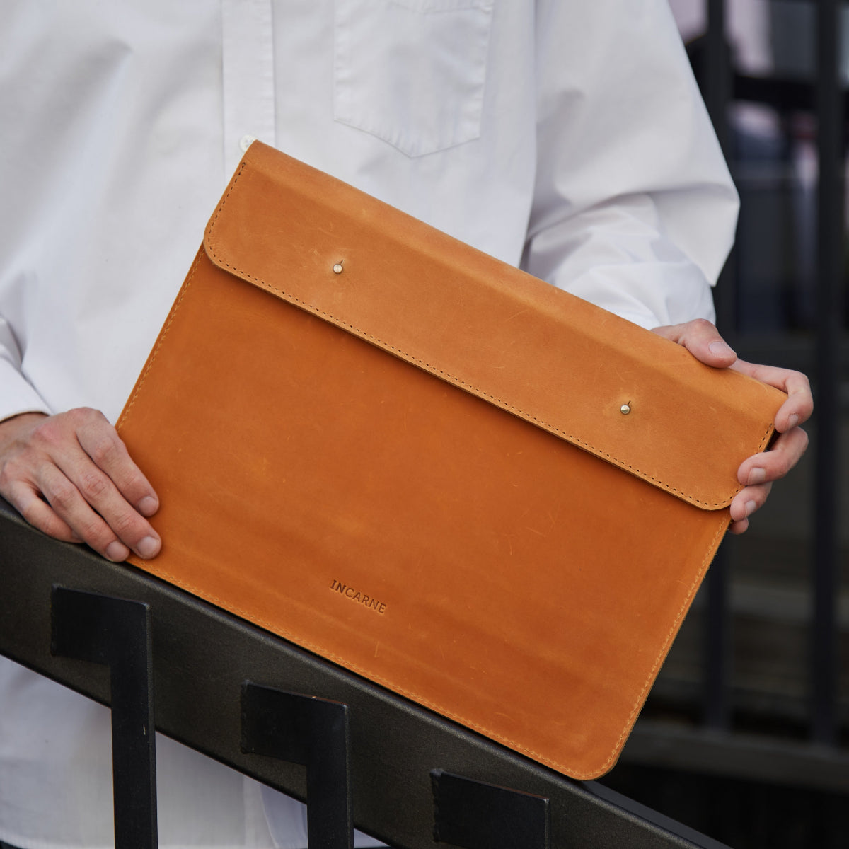 Spacious yet compact, the Neat leather case fits MacBook and other laptop models. It can be paired with an optional shoulder strap — a stylish and practical accessory for daily use or travel.
