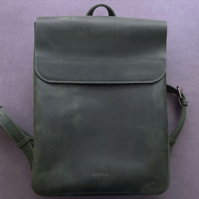The Unia backpack for MacBook is a balance of practicality and refinement. Made of vintage grey leather. It has a flap with hidden magnets and a zipper closure. On top there is a comfortable handle, and on the sides there are metal snaps that allow you to increase or reduce the volume of the backpack. The leather straps are adjustable in length. On the outside of the back panel there is a pocket for small essentials.